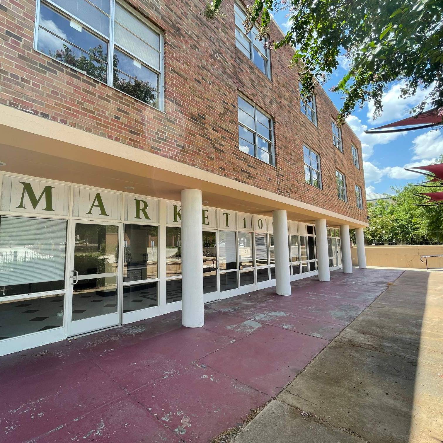 • two people dining on a campus patio